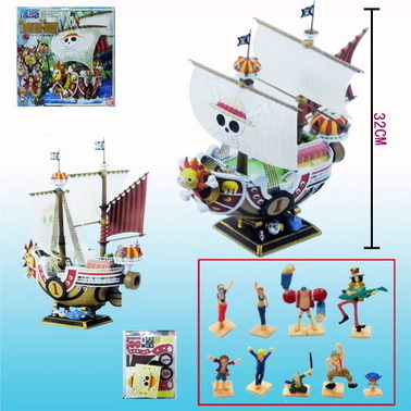 เรือวันพีชมาใหม่ฐานสี่เหลี่ยมแถมตัวละคร 9 ตัวในกล่อง แฟนวันพีชไม่ควรพลาด ของใหม่ ยังไม่ประกอบในกล่องสีฟ้า