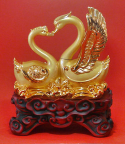 มือข้างหนึ่งถือวงแหวน มืออีกข้างถือทวนปราบมาร มีการลงลวดลายสีสัน สวยงามมาก