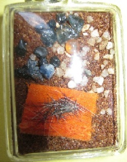 ด้านหลังล็อกเก็ต บรรจุ เม็ดพระธาตุ เกศาหลวงปู่ (อันนี้นะถ้าหลวงปู่ไม่ให้ ขอยังไงก็ไม่ได้ ไม่ใช่จะได้กันง่ายๆ) จีวรหลวงปู่ เกศาหลวงปู่ เม็ดทรายเสกหลวงปู่