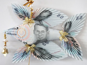 ปลาตะเพียนมงคลทำจากธนาบัตร