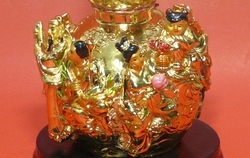 แปดเซียนรอบน้ำเต้าศักดิ์สิทธ์ ฐานกลม ออกแบบได้สวยงามมากด้วยเรซิ่นอย่างดี ใช้สีสันเคลือบเงา