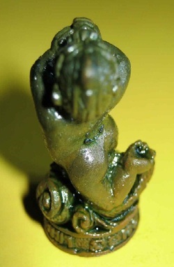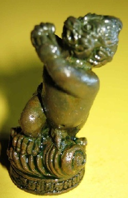 หลวงปู่ทิมท่านปลุกเสกเครื่องรางที่เป็นรูปสัตว์ได้อย่างมีชีวิตชีวา เมื่อผมและเพื่อนๆ หิ้วลังบรรจุหนุมานไปที่วัดท่านถามผมทันทีว่า เอาหัวใจมาด้วยหรือเปล่า ผมตอบท่านตามเคล็ดที่เคยได้ยินจากท่านว่า เอาหัวใจมาด้วยครับ ผมจำได้ตั้งแต่ผมได้สร้างพระกริ่งชินบัญชร ท่านถามผมว่าเอายอดเจดีย์ ยอดปราสาทมาด้วยหรือเปล่า ผมบอกว่าเอามาครับ ครั้งที่คุณเพียรวิทย์ และคุณมงคล นาคแพน ลาท่านไปเอาสิงโต ๔ ตัว ที่จะมาตั้งไว้ตรงบันไดศาลาภาวนาภิรัต หลวงปู่ทิมท่านสั่งว่า เอาหัวใจมันมาด้วยนะ ผมถามท่านว่า เอาหัวใจมาทำไมครับ หลวงปู่ทิมท่านบอกว่า วันดีคืนดีมมันจะได้ออกมาวิ่งเล่นได้ เหมือนกับที่ท่านถามผมว่าเอายอดเจดีย์ยอดปราสาทมาด้วยหรือเปล่า ตอนไปเททองหล่อพระกริ่งชินบัญชร และพระกริ่งชินบัญชรที่ผมสร้างให้ท่านก็ดังระเบิดเป็นยอดพระกริ่งอยู่ในเวลานี้ การสร้างของให้ขลังให้ดังต้องมีเคล็ดวิชาประกอบด้วยครับ อย่างเช่นหลวงปู่ทิมท่านจะสร้างพระขุนแผนพรายกุมารท่านก็สั่งให้ นายสิงห์ราช อัมฤทธิ์ ซึ่งมีทั้งชื่อ และนามสกุล เป็นมงคลคือมีทั้งมหาอำนาจและยืนยงเป็นอมตะ มาเป็นผู้สร้างพระขุนแผนพรายกุมารหรือยอดขุนพลบ้ายค่ายและก็โด่งดังเป็นที่แสวงหากันอยู่ในะขณะนี้ อาจารย์อนันต์ สวัสดิสวนีย์ อดีตหัวหน้าช่างสิบหมู่ของกรมศิลปากร ไปหาหลวงปู่พรหมมากับผมเป็นรายแรกๆ เมื่อหลายปีมาแล้ว บอกกับหลวงปู่พรหมมาว่า ผมสร้างหนุมานให้หลวงปู่ทิมจนโด่งดัง หลวงปู่พรหมมาท่านพูดว่า สร้างพ่อมันแล้วก็สร้างลูกมันอีกซิ ลูกมันเก่งกว่าพ่อมันอีก มันเก่งทั้งในน้ำบนบกและในอากาศด้วย ผมและอาจารย์อนันต์ จึงสร้างลูกหนุมานขึ้นมาอาจารย์อนันต์สร้างตัวใหญ่ ผมสร้างตัวเล็กโดยอาจารย์อาจารย์อนันต์เป็นผู้ออกแบบ ลูกลิงที่มีหางเป็นปลาอายุประมาณ ๗-๘ ขวบ นั่งพนมมืออยู่บนเกลียวคลื่นมีไอ้จู๋ให้เห็นอย่างน่ารัก โรงหล่อช่างถนอม นครอินทร์ หล่อมาให้ผมเป็นตัวอย่าง ๕๐๐ ตน พร้อมกับหนุมานนั่งแท่นอีก ๕๐๐ ตน เป็นเนื้อสัมฤทธิ์แก่ทองเหลืองทองแดง ทั้ง ๒ อย่าง ช่างถนอมหล่อให้คราวเดียวกับการสร้างรูปหล่อยืนองค์ใหญ่ปี ๒๕๓๗ เอาไปส่งให้ผมที่วัดละหารไร่ เมื่อใกล้จะถึงเวลาปลุกเสก ผมจึงไม่ได้ตรวจใบส่งของว่ามีอะไรบ้างและก็ไม่คิดว่าช่างถนอมจะหล่อมัจฉานุมาให้ด้วยเพระาผมสั่งให้หล่อเสร็จก่อนวันเพ็ญเดือน ๑๒ ตอนพระจันทร์อยู่ตรงกับศีรษะในเวลาเที่ยงคืน เมื่อทางโรงหล่อทำมาให้เป็นตัวอย่างก่อนผมจึงไม่ทราบ จนพิธีปลุกเสกรูปหล่อยืนและของขลังอื่นเสร็จหมดแล้ว หลวงปู