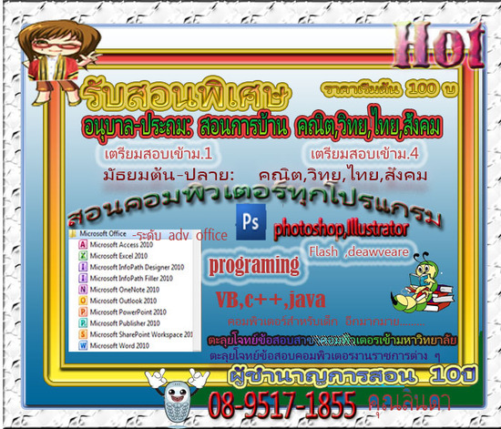 รับสอนคอมพิวเตอร์ทุกโปรแกรม คณิตศาสตร์ วิทยาศาสตร์ ไทย-สังคม ทุกระดับชั้น ราคาเริ่มต้น 100