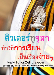 สนใจเข้าดูรายละเอียดเพิ่มเติมได้ที่ http://www.tutor2chula.com