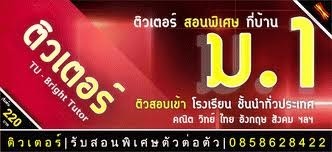 TU.Bright รับสอนพิเศษ ติวตามบ้าน ติวนอกสถานที่ คณิต วิทย์ อังกฤษ ฟิสิกส์ เคมี ชีวะ ไทย สังคม ตั้งแต่ระดับอนุบาลจนถึงมหาวิทยาลัย ไม่ว่าจะเป็นสอนการบ้าน ติวสอบ เพิ่มเกรด ปูพื้นฐานติวสอบ ADMISSION O-NET A-NET SMART 1 CU-TEP TU-GET CU-AAT SAT TOEFL IELTS GAT PAT GED IG รวมถึงวิชาเฉพาะต่างๆ ทุกวิชา ทุกหลักสูตร โดยมีทีมผู้สอนจากมหาวิทยาลัยชั้นนำ เช่น ธรรมศาสตร์ จุฬา มหิดล เกษตร ฯลฯ รับประกันคุณภาพ 100% และทางเรายังมีการจัดส่งติวเตอร์ไปทั่วกรุงเทพฯ และปริมณฑล เพื่อความสะดวกสบายของน้องๆทุกคนค่ะ น้องๆสามารถเรียนแบบกลุ่มหรือเดี่ยวก็ได้ แล้วแต่ความต้องการของน้องๆ โดยมีอัตราค่าเรียนต่อคนดังนี้