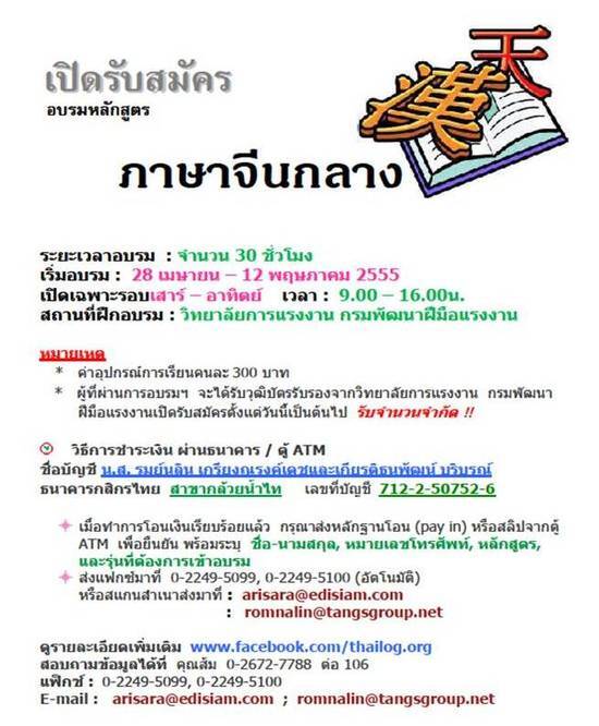 | คำค้น: | รับสมัคร | อบรม | ภาษาจีนกลาง | | ||