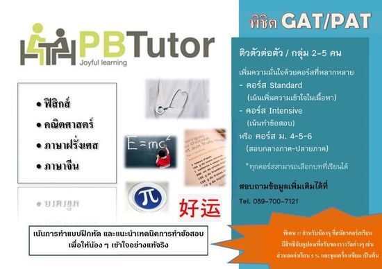 สนใจสอบถามรายละเอียดเพิ่มเติมได้ที่ 083-7601061 "PB Tutor"