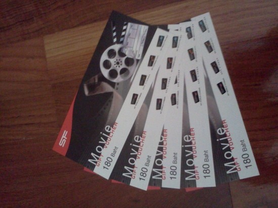 ขายตั๋วหนัง SF มูลค่า 180 ยาท ในราคา 120 บาท หมดอายุ 31/01/2013 ครับ