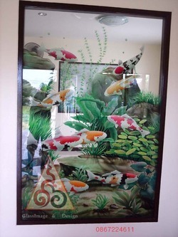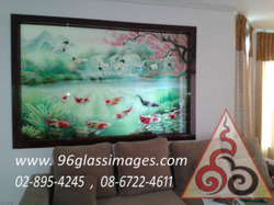 ลักษณะงานที่ใช้เทคนิคด้วยการพ่นทรายกระจก พ่นชิ้นงานกระจกให้เกิดเป็นร่องลึกเป็นฝ้าสีขาวจนเป็นมิติเกิดเป็นรูปภาพ ตามที่เราต้องการ และเพ็นท์สีบนกระจกเน้นความเหมือนจริง ด้วยความประณีต และความชำนาญของช่างเฉพาะด้าน เหมาะสำหรับตกแต่งภายในอาคารสถานที่ต่างๆ