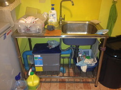 4. อ่างล้างจานสเตนเลสพร้อมก็อก และถังดักไขมัน อย่างดีหลุมลึก 18cm 2700