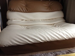 ขาย Sofa Bed หนัง นำเข้าจากญี่ปุ่น เล่นสีทูโทน ( น้ำตาลเข้ม ตัดกับ น้ำตาลครีม)