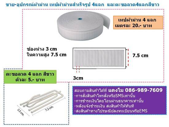 ขายเทปผ้าม่านสำเร็จรูป พร้อมตะขอ 4 แฉก สำหรับม่าน3จีบ
