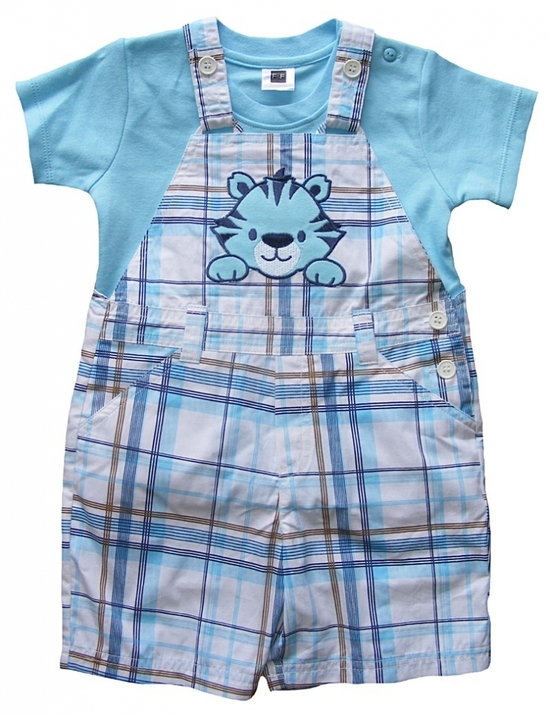 เสื้อผ้าเด็ก-ชุดเอี๊ยมเด็ก-F&F-เอี๊ยมลายสก็อตสีฟ้าปักน้องเสือที่หน้าอกคู่กับเสื้อแขนสั้นสีฟ้าสดใสน่ารัก