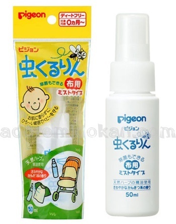 สเปร์ยกันยุง Pigeon 50 ml. สูตรอ่อนโยน สำหรับผิวบอบบางของลูกน้อย สามารถใช้ได้กับเด็กตั้งแต่แรกเกิดขึ้นไปเลยค่ะ เพราะ เป็นส่วนประกอบจากธรรมชาติ Natural Herb ญี่ปุ่น จึงปลอดภัย ปราศจากสารเคมีที่ก่อให้เกิดการระคายเคืองต่อเด็ก หรือสารเคมีตกค้าง และยังมีกลิ่นหอมอ่อนๆ เมื่อฉีดที่เสื้อผ้าหรือของใช้ใกล้ตัวน้อง เช่น เตียง รถเข็นจะสามารถ ป้องกันยุงที่บินเข้าใกล้น้องได้อย่างได้ผล เมื่อยุงได้กลิ่นก็จะบินหนีไป