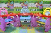 เก้าอี้เด็ก 3 in 1 (เก้าอี้เสริมทักษะ) เหมาะสำหรับเด็ก 6 เดือน - 3 ขวบค่ะ ผลิตในประเทศไทย มี 3 สี ชมพู ฟ้าอมเขียว และเหลือง โครงสร้างแข็งแรง ทรงตัวดี สีสันสดใส สวยงาม ผลิตจากพลาติกเกรด A ไม่เป็นอันตรายต่อเด็ก ผ่านการตรวจสอบความปลอดภัยตามมาตรฐาน EN71 past 3 รับน้ำหนักได้ถึง 30 กิโลกรัมค่ะ เก้าอี้ช่วยฝึกพัฒนาการเด็กในการทานอาหาร มีถาดวางของด้านหน้า มีตัวล็อก 2 ข้าง ถอดออกและใส่กลับ เปื้อนก็ล้างทำความสะอาดได้อย่างง่ายดายค่ะ และที่พิเศษสุด สามารถให้เด็กฝึกนั่งขับถ่าย โดยเปิดฝาที่นั่งซึ่งจะมีกระโถนรองรับอยู่ด้านล่าง เมื่อน้องถ่ายเสร็จ ก็นำกระโถนยกออกไปล้างทำความสะอาดได้ค่ะ มีให้เลือก 3 สี คือ ชมพู เขียวอมฟ้า เหลือง ราคาขายเพียง 350 บาท