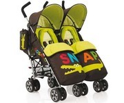 Cosatto you2 Stroller - This quirky stroller in colourful with two seperate reclining seats whilst one tot is sitting up and enjoying the view, the other can lay back and sleep whilst mum and dad strolls along.