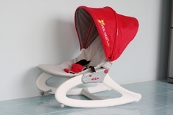สามารถโยกเหมือนม้าโยกได้ มีระบบสั่นและเพลงกล่อม มีหลังคาพับได้ สีสันสดใส เหมาะสำหรับให้เด็กนั่งเล่นหรือป้อนข้าว สภาพสินค้าดีมาก สามารถถอดพับเก็บได้ รับน้ำหนักได้ถึง25กิโลกรัม มีคู่มือการใช้ และยังอยู่ในช่วงรับประกัน