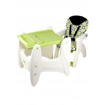 เหมาะสำหรับฝึกเด็ก 6 เดือน 3 ขวบให้นั่งรับประทานอาหารพร้อมกับผู้ปกครอง ที่นั่งมีเข็มขัดรัดเพื่อความปลอดภัย มีถาดรองอีกหนึ่งชั้นถอดล้างได้ เบาะที่นั่งถอดซักได้ เมื่อเด็กโตขึ้นสามารถถอดเก้าอี้ออก และปรับฐานเป็นโต๊ะได้ เผื่อเด็กนั่งเขียนหนังสือ ราคาของใหม่หกพัน รับของเองสามารถต่อรองราคาได้