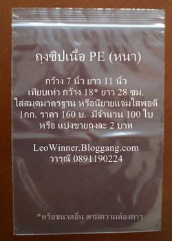 ถุงซิป 7*11 นิ้ว 1 กก. ราคา 160 บาท มี 100 ถุง