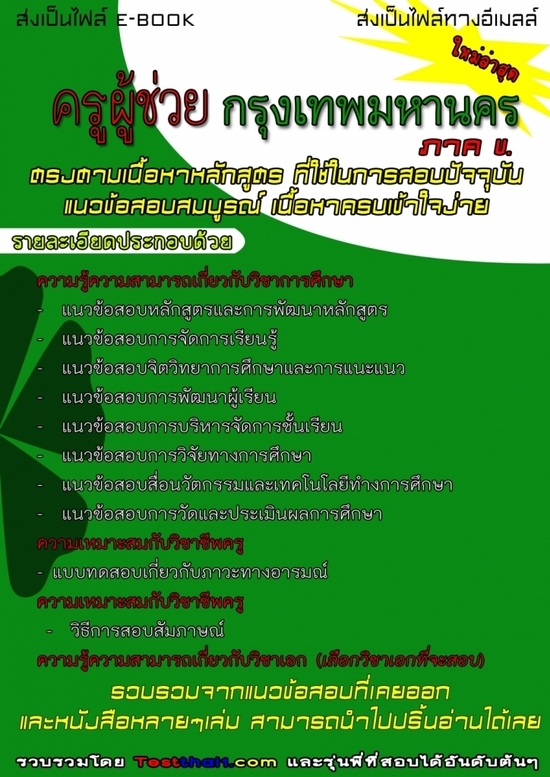 จำหน่ายเอกสารแนวข้อสอบ ภาค ข. ครูผู้ช่วย กรุงเทพมหานคร ใหม่ล่าสุด