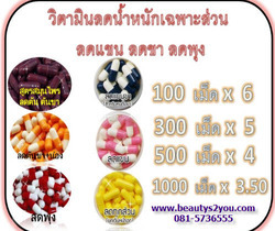 - ลดเฉพาะส่วน - ลดแขน ลดขา หน้าเรียว ลดพุง ต้นแขน ปีกแขน เม็ดละ 5-7บาท