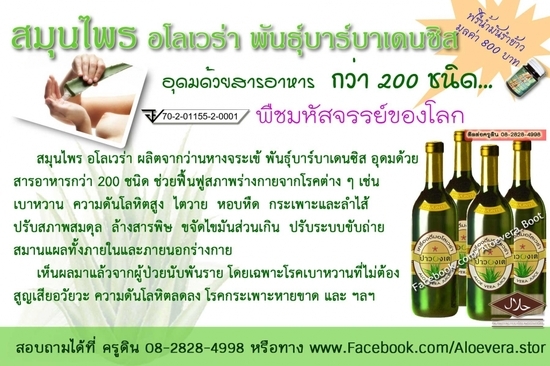 ผ่านการรับรองจากองค์การอาหารและยา (อย.) และได้รับเครื่องหมายฮาลาล อโลเวร่าพันธุ์บาบาเดนชีสประกอบด้วยสารอาหารที่มีประโยชน์มากที่สุด