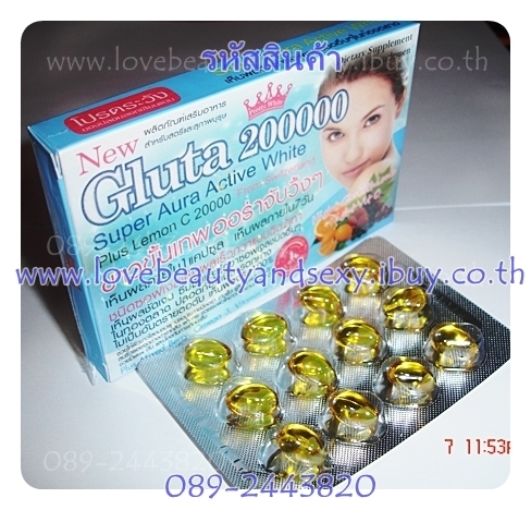 อาหารเสริม Glutathione 200,000 + Plus Lemon C 20,000 ( กลูต้า 200,000 + ซุปเปอร์เลมอน 20,000 ) เพิ่มความขาวกระจ่างใส ลดจุดด่างดำ ชนิดซอฟเจลเห็นผลเร็วกว่าแบบฉีดถึง 2 เท่า ขาวเร็วภายใน 7 วัน รุ่นนี้ขายดีมากลูกค้าสั่งบ่อยที่สุด ขาวเร็ว 1 แผงก็เห็นผล