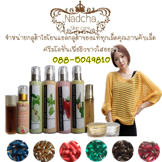ยินดีต้อนรับสู่ร้าน NADCHA SKINCARE จำหน่ายกลูต้าไธโอนและแอลลกลูต้าแบบทานราคาส่ง ของแท้1000% คุณภาพคับเม็ด สินค้าดีมีคุณภาพ วิตามินลดสัดส่วน ดีท๊อกล้างสารพิาในตับ คลอโรฟิลล์ล้างสารพิษในร่างกาย ครีมบำรุงผิวหน้าเพื่อผิวขาวกระจ่างใสอย่างเป็นธรรมชาติ กันแดดใยไหมเนื้อมูสSPF60เนื้อมูส ทาแล้วผิวเนียนนุ่ม หน้าไม่มัน โลชั่นทาผิว ช่วยปรับสภาพผิวขาวเนียนอมชมพู และผลิตภัณฑ์บำรุงผิวช่วยทำให้ผิวขาวใสออร่าเปล่งปลั่ง สินค้ามี อย.ผ่านGMP รับรองคุณภาพคะ