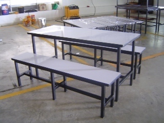โครงโต๊ะและม้านั่งทำจากเหล็กเหลี่ยม ขนาด 1.2x1.2 นิ้ว.