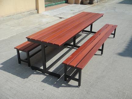 หน้าโต๊ะและหน้าม้านั่ง ทำจากไม้เต็ง