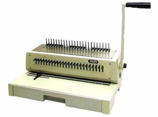 เจาะและเข้าเล่มเอกสารโดยใช้คันโยก เข้าเล่มเอกสารโดยใช้สันห่วงพลาสติกขนาดต่างๆ ได้ถึง 2 นิ้วหรือกระดาษ 500แผ่นเข้าเล่มเอกสารได้กว้าง 14 นิ้วหรือกระดาษ A4, F14 ตั้งปรับระยะง้างสันห่วงได้ 9 ตำแหน่งมีปุ่มปรับระยะห่างของขอบกระดาษและรูเจาะได้ 4 ระยะมีปุ่มยกเว้นใบมีด สำหรับกำหนดระยะการเจาะรูเอกสารตามต้องการ ขนาดเครื่อง 530 x 360 x 280 มม.