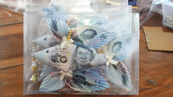 ขายปลามงคลทำจากธนบัตร