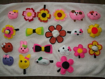 ขายกิ๊บติดผมผ้าสักหลาดเย็บด้วยมือน่ารัก ๆ ค่ะ ขายส่งนะคะโหลละ 100 บาท คละขนาดและแบบค่ะ สนใจติดต่อ 0801019923