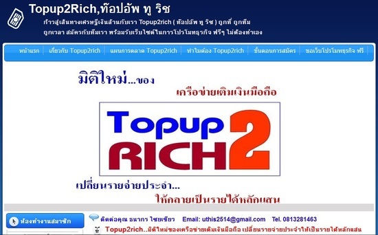 Topup2rich ธุรกิจออนไลน์เปิดตัวจริงๆ 15/09/55 ผ่านมานี้ สนใจสมัครคลิกมาก่อนได้ก่อน