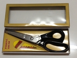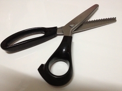 ใช้สำหรับตัดริบบิ้น หรือ ผ้า ให้เป็นรอยหยัก วัสดุเป็นเนื้อสแตนเลส ส่วนด้ามเป็นพลาสติก