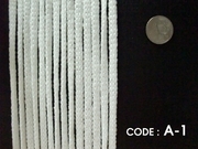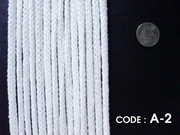 รหัส A-2 เชือกถักสีขาวดิบ แบบคอตตอนไลค์ 4เข็มถัก วัตถุดิบ 100% โพลีเอสเตอร์ ขนาด 195เมตร/กิโลกรัม