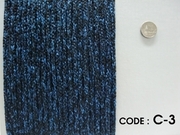 รหัส C-3 เชือกถักสีหางกระรอก ดำ-น้ำเงิน แบบคอตตอนไลค์ 4เข็มถัก วัตถุดิบ ดำ PES70% น้ำเงิน PP30%