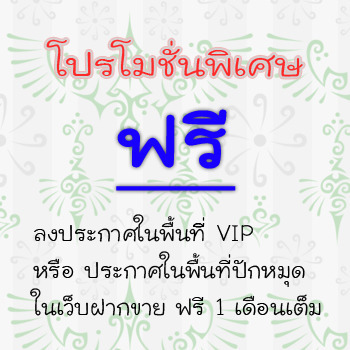 ยังมีบริการ แบบ VIP ที่มีให้เลือกทั้ง เป็น แบบประกาศลงในพื้นที่พิเศษ และเป็นแบบ Banner ในราคาที่ถูกสุดๆ แล้วโปรโมชั้นโดนใจ สามารถเข้าชมรายละเอียดเพื่มเติมได้ที่นี้เลย http://www.fak-khay.com/Service_charge.html