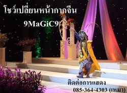 การแสดงเปลี่ยนหน้ากากจีนคณะ9MaGiC9 เป็นการแสดงที่ได้รับความนิยมอยู่ในประเทศจีนเป็นอย่างมาก ซึ่งในปัจจุบัน การแสดงชุดนี้เข้ามาในเมืองไทยแล้วครับ การแสดงชุดนี้ได้สร้างความอัศจรรย์ใจ และความสนุกสนาน แก่ผู้ชมอย่างมาก การแสดงคณะ9MaGiC9 นักแสดงที่เปลี่ยนหน้ากากคณะเรามีความสามารถและประสบการณ์ในการแสดงบนเวทีมากกว่าและแตกต่างจากคณะอื่น ซึ่งนักแสดงจะร่ายรำ พร้อมทั้งลีลา แบบฉบับจีน และจะเปลี่ยนหน้ากากนับสิบหน้าอย่างรวดเร็ว ในเวลาเพียงเสี้ยววินาที นอกจากนี้ยังประกอบด้วยการแสดงมายากลจีนผสมผสานในการแสดง อาทิ เสกโต๊ะลอย เสกกระต่าย ฯลฯ เป็นการแสดงที่สนุก ตื่นเต้น และหาชมยากมาก ซึ่งโดยปรกติแล้วการแสดงชุดนี้จะชมได้ที่เมืองเฉินตู มณฑลเสฉวน ประเทศจีน เท่านั้น การโชว์เปลี่ยนหน้ากากนั้นเหมาะสำหรับกับงานเลี้ยงพิเศษ งานแขกระดับผู้ใหญ่ งานมงคล หรืองานสังสรรค์สมาคมจีน