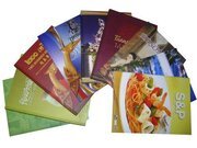 รับบริการ @ พิมพ์เมนูอาหาร ด้วยกระดาษที่มีความหนา เคลือบกันน้ำอย่างดี เข้าเล่มสวยงาม ทั้งปกแข็ง ปกอ่อน เมนูพลาสติก แบบแผ่นพับ 2 พับ, 3 พับ ไซน์ A3 A4 A5 หรือตามแบบที่ลูกค้าต้องการ