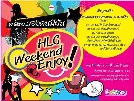 จุดนัดพบของคนมีฝัน..กับWeekend Enjoy เวทีแสดงความสามารถของเหล่าเยาวชนคนเก่ง จาก 4 สถาบันชื่อดัง ในวันที่ 20 ก.ค.กับการแสดงรำพื้นเมืองของ ร.ร.ไขศรีปราโมชอนุสรณ์ 21ก.ค.กับการแสดงศิลปะพื้นบ้านประยุกต์ ของร.ร.มัธยมบ้านบางกะปิ ในวันที่27 ก.ค.พบกับการแสดงรำ 4 ภาคของ ม.รามคำแหง และในวันที่ 28 ก.ค.พบกับการเต้น Cover Dance ของ ร.ร.มัธยมบ้านบางกะปิ ขอเชิญทุกท่านมาร่วมกันเป็นส่วนหนึ่งของความฝันได้แล้วตั้งแต่เวลา 17.00-19.00 น. ที่บริเวณ Relex Zone ชั้น 2 แฮปปี้แลนด์เซ็นเตอร์ ช้อปสบายทั้งแฟชั่นและไอที