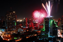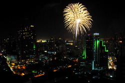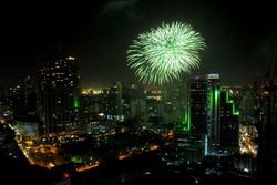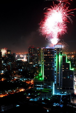 ชุดจุดบนยอดตึกจะมีพลุรวมสีรวมชุดแตกต่างกันไป 100 นัด
