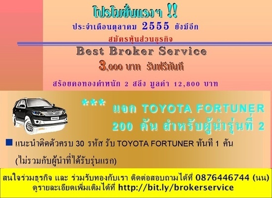 เพียงคุณสมัครหุ้นส่วน Best broker service 1 หุ้น ราคา 3,000 บาท
