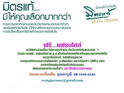 โดย ไม่มีค่าใช้จ่าย,ไม่เก็บค่าแฟรนไชส์ และค่าลิขสิทธิ์ใดๆ ทั้งสิ้น ฟรีแฟรนไชส์