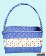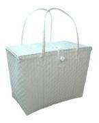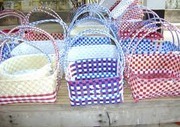 จากเส้นพลาสติก ใช้การสานเหมือนกับปลาตะเพียน หรือ สานเสื่อ เป็นงานง่ายๆ ให่ค่าแรงดี