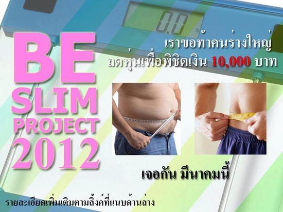 BE SLIM PROJECT เป็นโปรเจคที่เฟ้นหา บุคคลที่มีน้ำหนักเกินมาตราฐานของร่างกาย แต่มีความต้องการที่จะเปลี่ยนรูปร่างตัวเอง โดยใช้หลักการโภชนาการบำบัดควบคู่กับการออกกำลังกาย เพื่อเป็นกำลังใจให้กับคนที่มีรูปร่างใหญ่แและเป็นแบบอย่างในการลดน้ำหนักที...่ถูกวิธีและปลอดภ้ยให้กับบุคคลอื่น