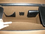 -หนัง แท้สีดำ ทั้งด้านนอกและด้านใน ขนาด กว้าง 12 " X ยาว 18" X หนา 9" หุ้มด้านในด้วยผ้ากำมะหยี่อย่างประณีต มีช่องเก็บของทั้งด้านนอกและด้านใน