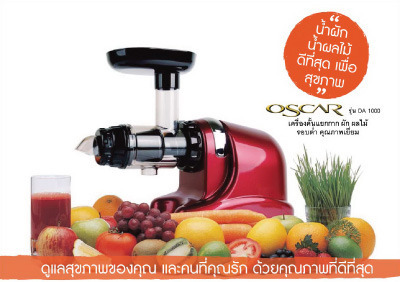 หากคุณเป็นอีกคนหนึ่งที่รัก และใส่ใจในสุขภาพ การดื่มน้ำผักผลไม้ในปริมาณที่มากพอ จะช่วยป้องกัน และรักษาความเจ็บไข้ได้ การวิจัยใหม่ ๆ พบว่า สารประกอบในพืชที่เรียกว่า ไฟโทเคมิคอล (phytochemicals) เป็นกุญแจไขสู่วิธีป้องกันโรครุนแรง และโรคร้ายแรง อย่างเช่น มะเร็ง โรคหัวใจ หอบหืด ข้ออักเสบเรื้องรัง และโรคภูมิแพ้ นอกจากนี้สารดังกล่าวยังชะลอความเสื่อมของร่างกาย ทำให้ดูเป็นหมุ่มเป็นสาวอยู่เสมอ ผิวพรรณดี เปล่งปลั่ง มีน้ำมีนวล ดูเป็นหนุ่มเป็นสาว สวยอยู่เสมอ การทำ น้ำผัก น้ำผลไม้ คั้นสด ๆ ไม่ใช่เรื่องยาก และน่าเบื่ออีกต่อไป เพราะคุณมีผู้ช่วยชั้นเยี่ยมอย่าง Oscar DA1000 เป็นการลงทุนเพื่อสุขภาพเพื่อตัวคุณเอง คุ้มเกินคุ้ม ซื้อเครื่องเดียวจบไม่ต้องลองผิดลองถูก เสียเงินซ้ำซ้อน