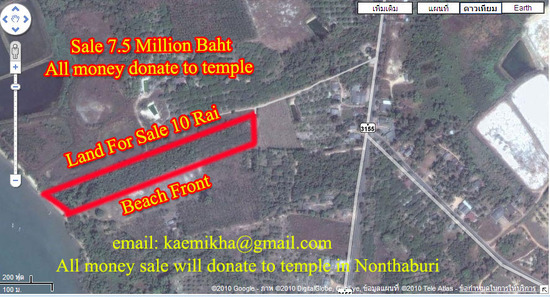 เจ้าของต้องการขายเพื่อนำเงินทั้งหมดถวายวัด ตามที่ตั้งใจไว้ ซื้อไว้เกรงกำไรก็งดงาม อีกทั้งเหมือนเป็นส่วนหนึ่งได้ทำบุณด้วย แล้วยังมีที่ดิน 10 ไร่ด้วย