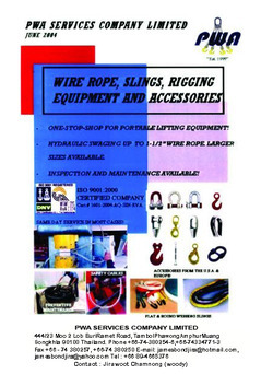บริษัท พี ดับบลิว เอ เซอร์วิสเซส จำกัด จำหน่ายลวดสลิง, สลิงประกอบ 2 ขา และ 4 ขา , สะเก็น, สลิงอ่อน, โซ่, รอกโซ่, เกลียวเร่ง, ตะขอ, สมอเรือ, และอุปกรณ์ยก, ลาก, ดึงทุกชนิด